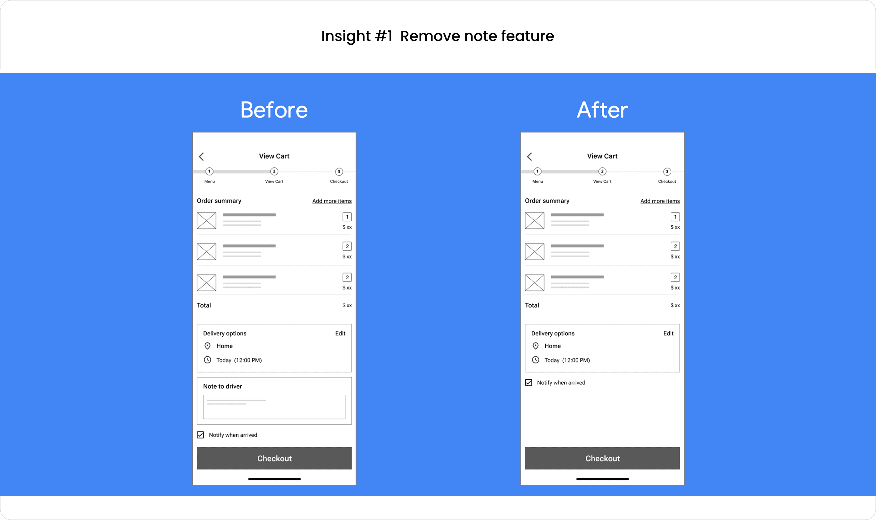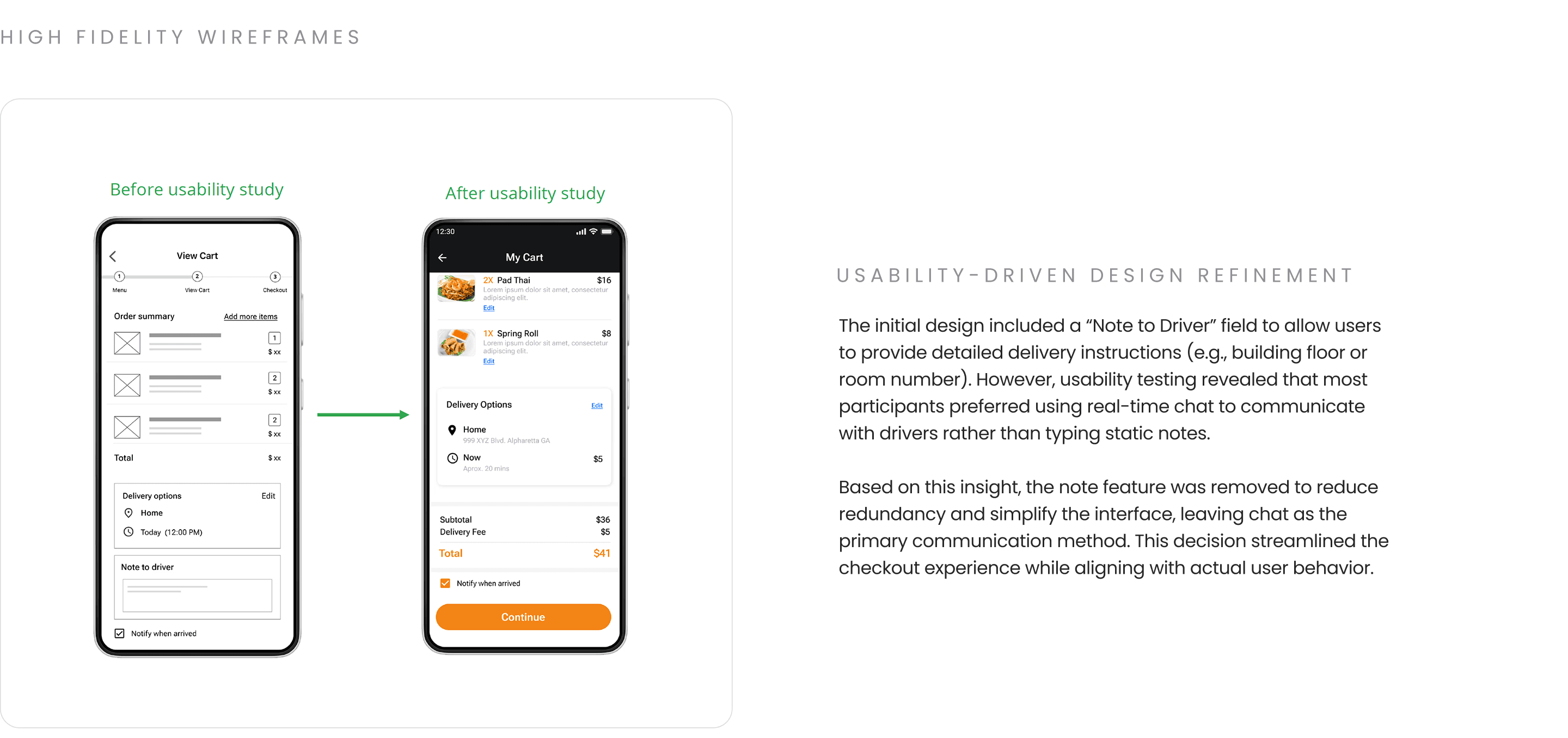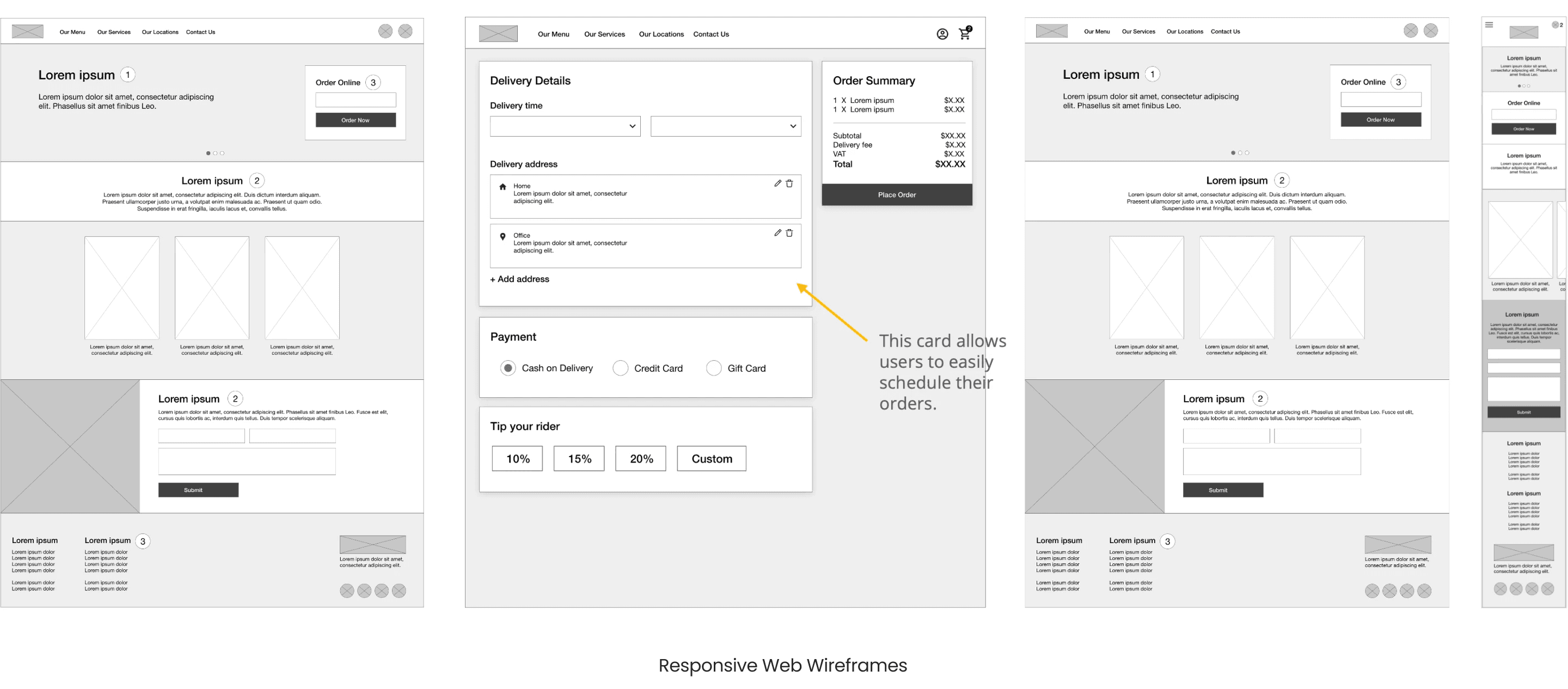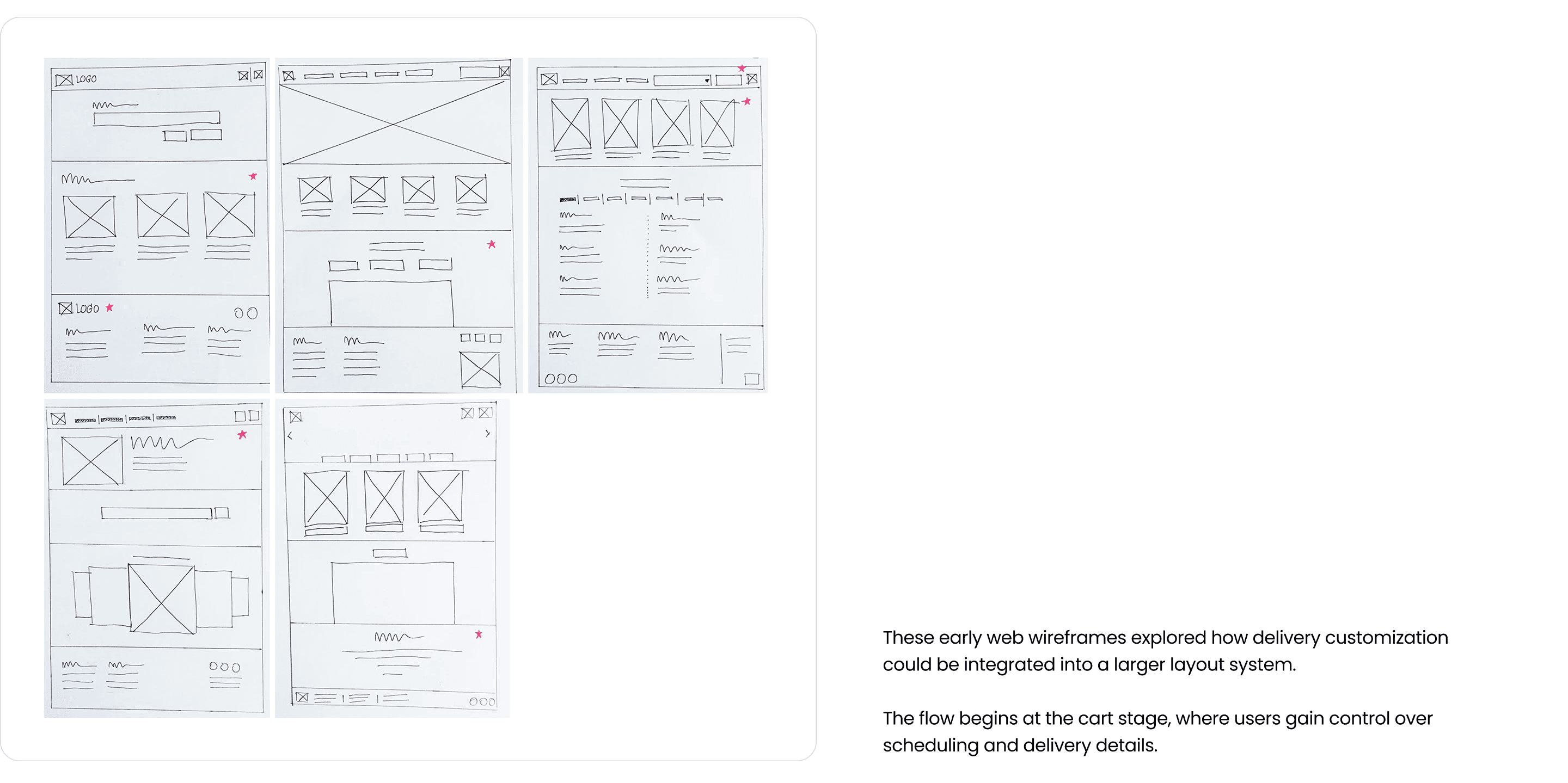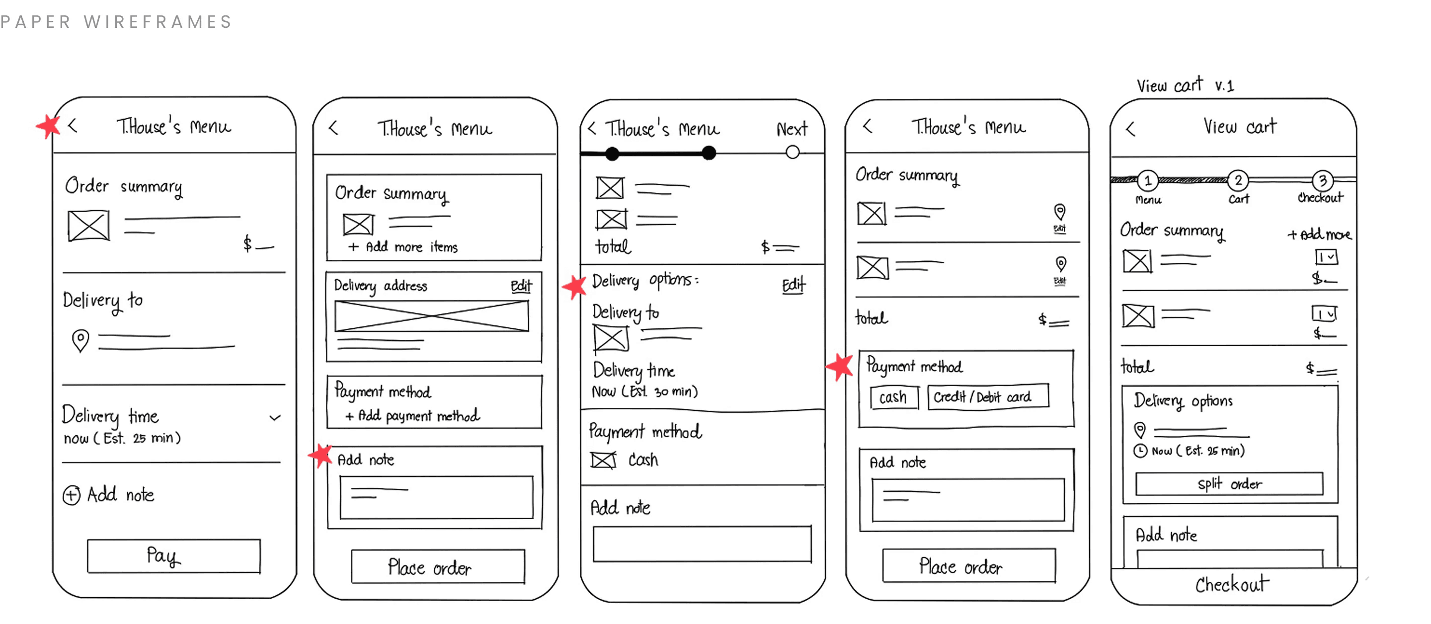 Initial sketches explored how delivery time, payment, and notes could be structured clearly within the order flow.