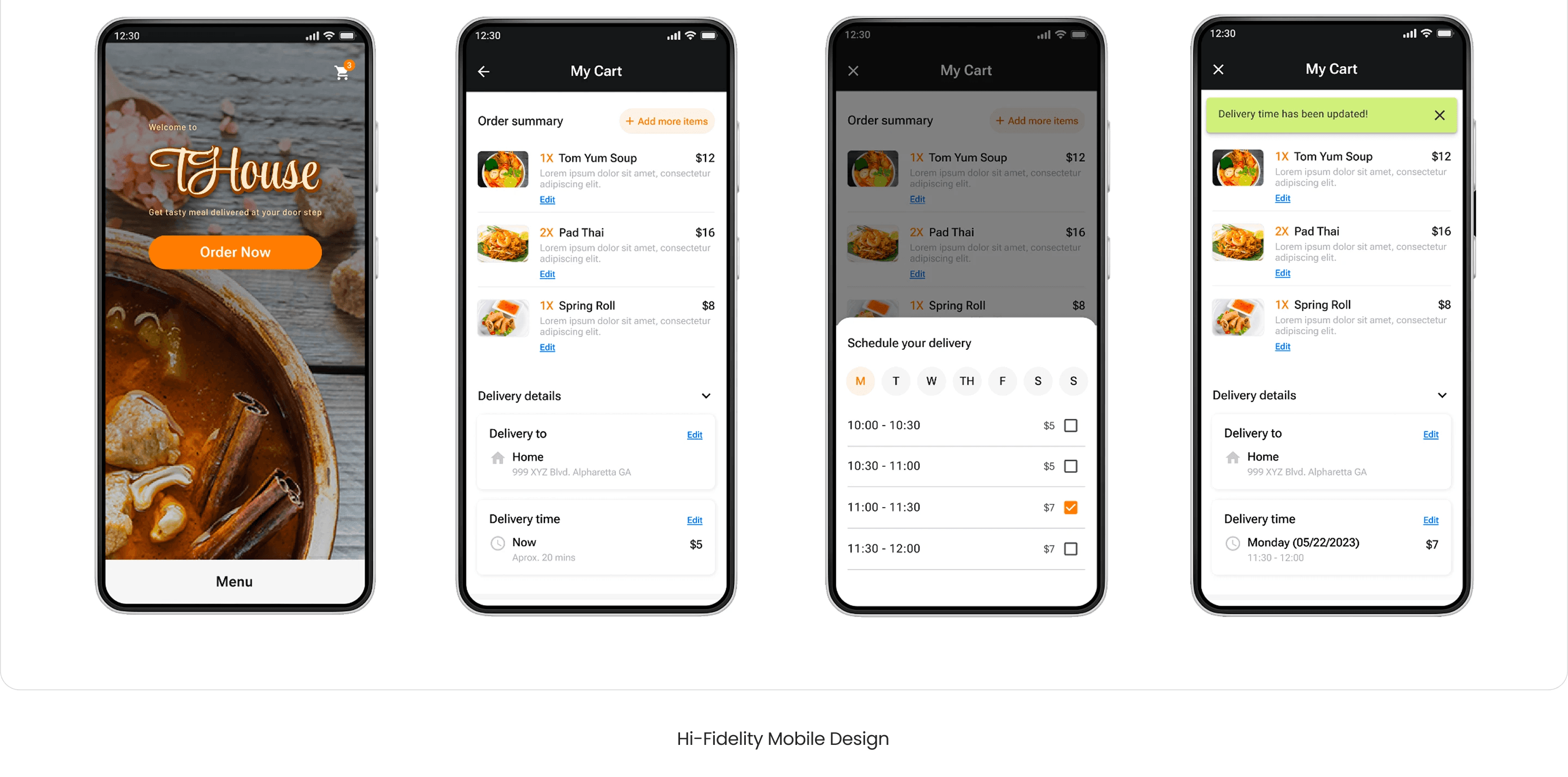 While THouse offered takeout and delivery through third-party platforms, those services lacked flexible scheduling options for busy customers. Many people need to plan meals between shifts, schedule deliveries in advance, or coordinate drop-offs at specific locations. The goal of this project was to design a more flexible and user-centered delivery scheduling experience that allows customers to choose their preferred location, date, and time, all within a seamless, cross-platform system.